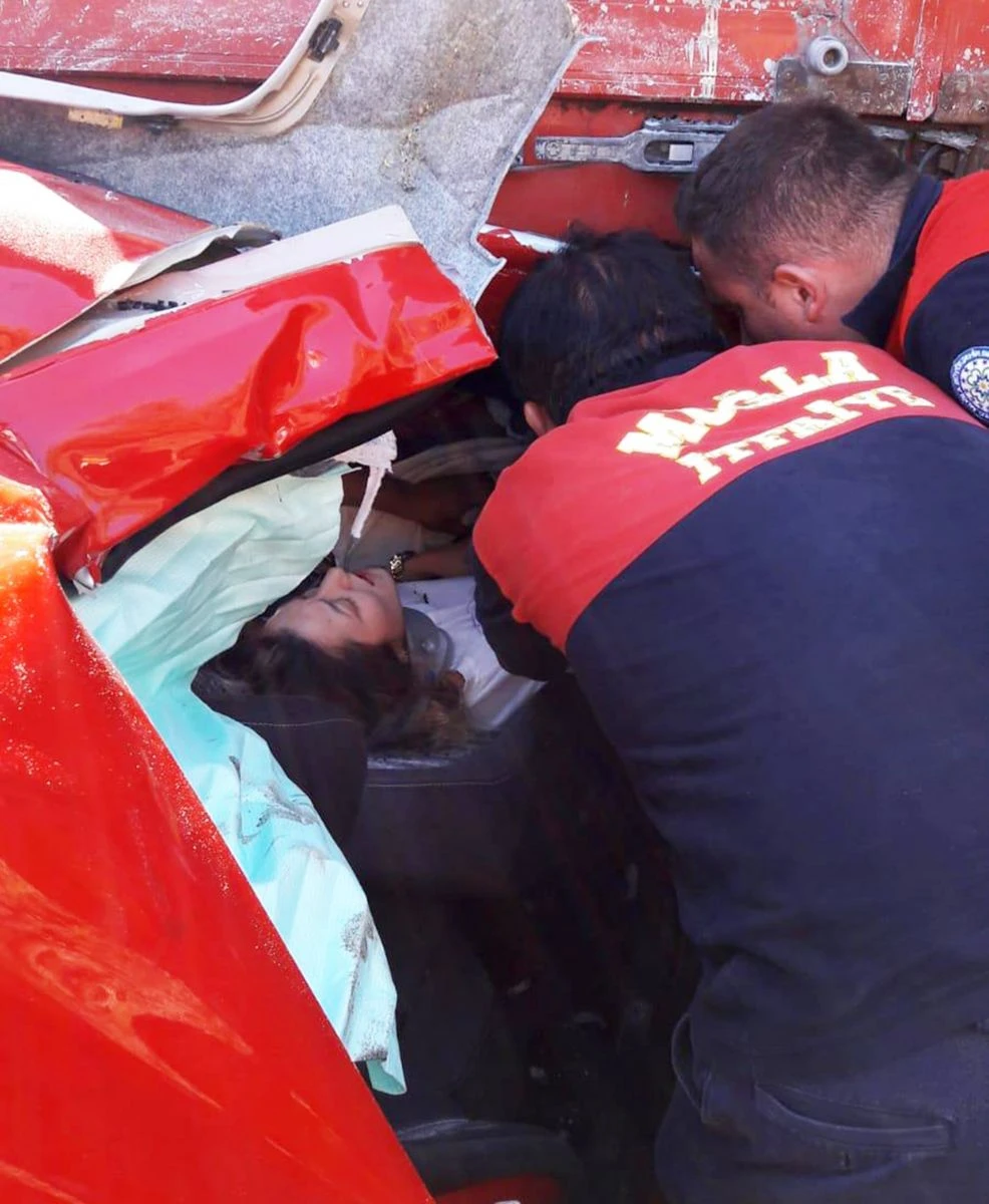 Muğla 112 Acil Çağrı Merkezi’ne yapılan ihbar sonrası olay yerine 112 Acil ambulansı, Büyükşehir Milas İtfaiye Grup Amirliği AKS ekipleri ve trafik ekipleri sevk edildi. Kamyonun dorsesine sıkışan araç içinde bulunan Aysu Tufan ve Batuhan Tufan isimli vatandaşlar itfaiye ekipleri tarafından aracın üst bölümü kesilerek sıkıştıkları yenden kurtarılarak 112 sağlık ekiplerine teslim edildiler.