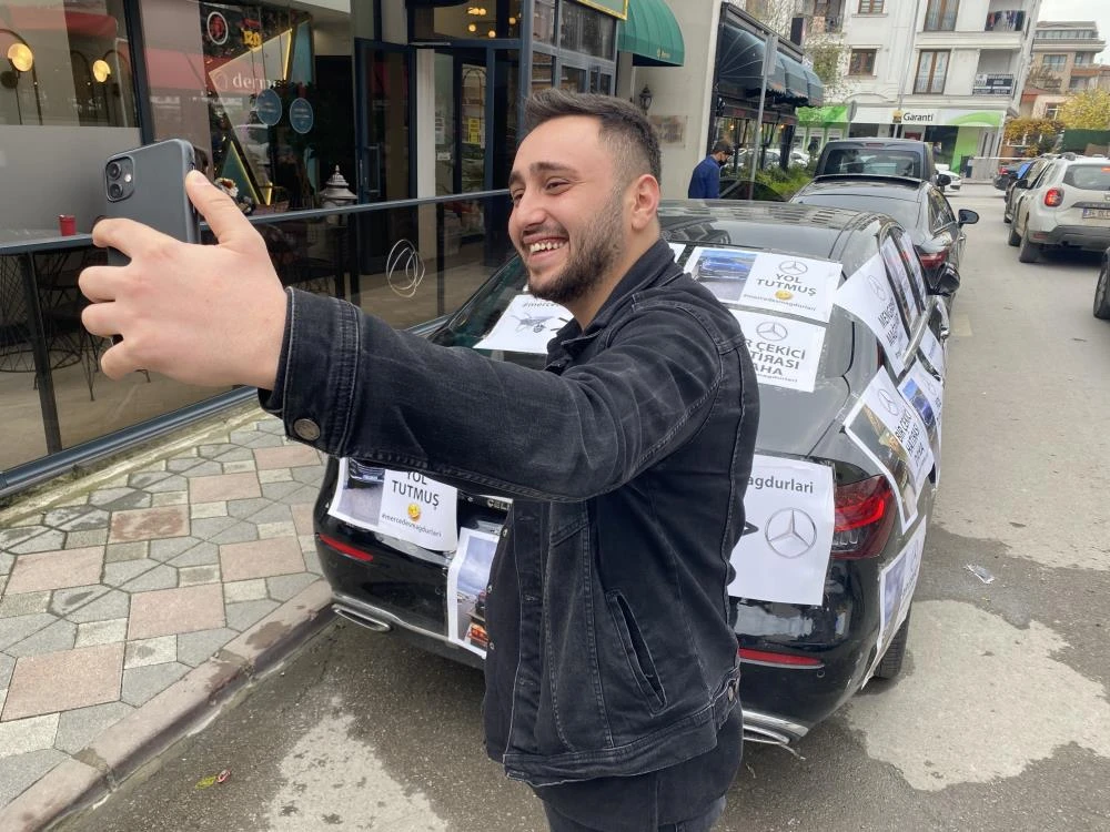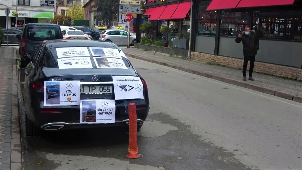 Avcı, aracın değiştirilmesine yanaşmayan ve onarım yapmak isteyen firmaya dava açtı. Hiçbir şekilde çalışmayan otomobili çekici yardımıyla Gebze’nin merkezinde bulunan ofisinin önüne çektiren Avcı, milyonluk aracı iterek park etti. Avcı, güzel hayallerle aldığı otomobilin her köşesine, ‘Bir çekici hatırası’, ‘Yol tutmuş’, ‘El arabası büyüktür Mercedes’ yazılı kağıtlar yapıştırarak firmayı mizahi bir şekilde protesto etti. Aracı bu halde gören vatandaşlar da, telefonlarıyla fotoğrafını çekip, bu anı ölümsüzleştiriyor.
