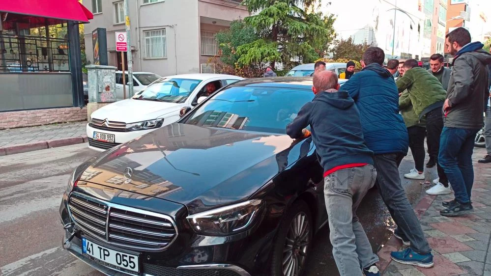 Avcı, milyonluk aracı vatandaşların da yardımıyla iterek park etti.