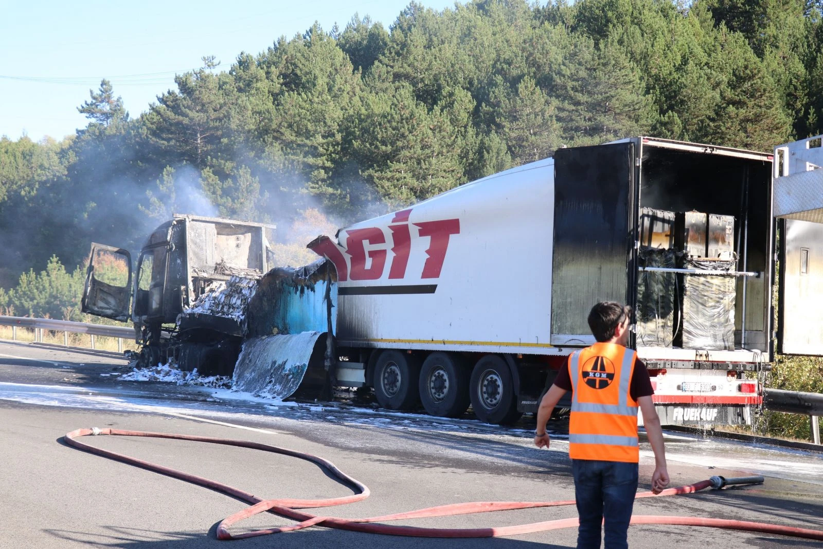 Tırın çekici kısmından dumanlar yükseldiğini gören sürücü Yıldırım, aracı emniyet şeridine çekerek aşağı indi. Sürücünün inmesiyle birlikte tır alev alev yandı. Diğer sürücülerin ihbarı üzerine olay yerine Bolu ve Yeniçağa itfaiye ekipleri sevk edildi. Ekiplerin yaklaşık 2 saatlik çalışması sonucu yangın kontrol altına alındı.