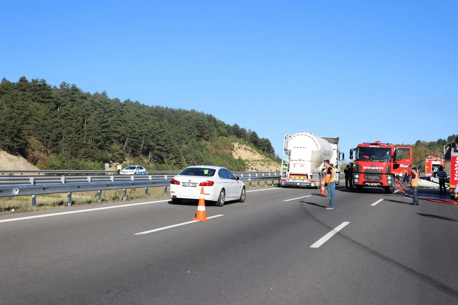 Yaklaşık 2 saat boyunca trafiğe kapalı kalan TEM Otoyolu Ankara istikameti, soğutma çalışmalarının ardından tek şeritten kontrollü olarak açıldı. Olayla ilgili inceleme başlatıldı.