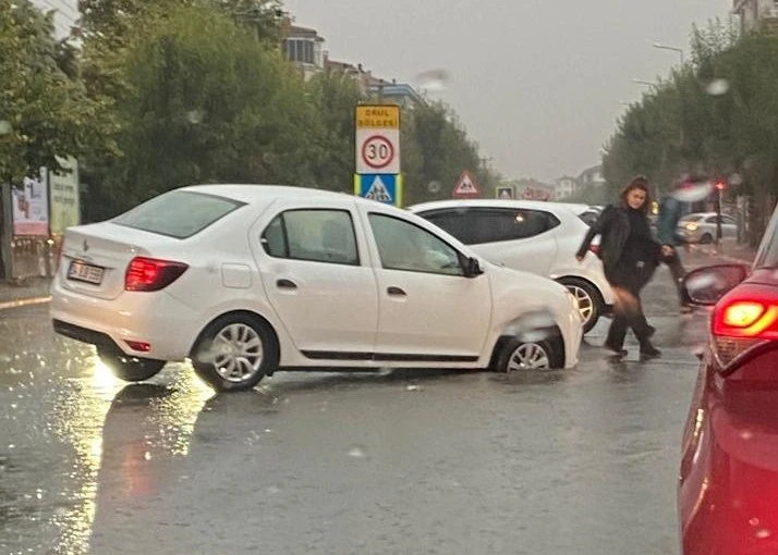 Yağış sebebiyle yolda seyir halinde bulunan bazı araçlar, çukura saplanarak kontağı kapatmak zorunda kaldı. Çukura saplanan İlçe Emniyet Müdürlüğüne bağlı ekiplerde yağış sebebiyle kayganlaşan yolda vatandaşları uyardı.