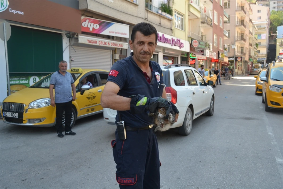Kendi imkanlarıyla hayvanı kurtaramayan taksi şoförü, durumu itfaiyeye bildirdi. Olay yerine gelen itfaiye ekipleri, kedi yavrusunu sıkıştığı yerden kurtardı.