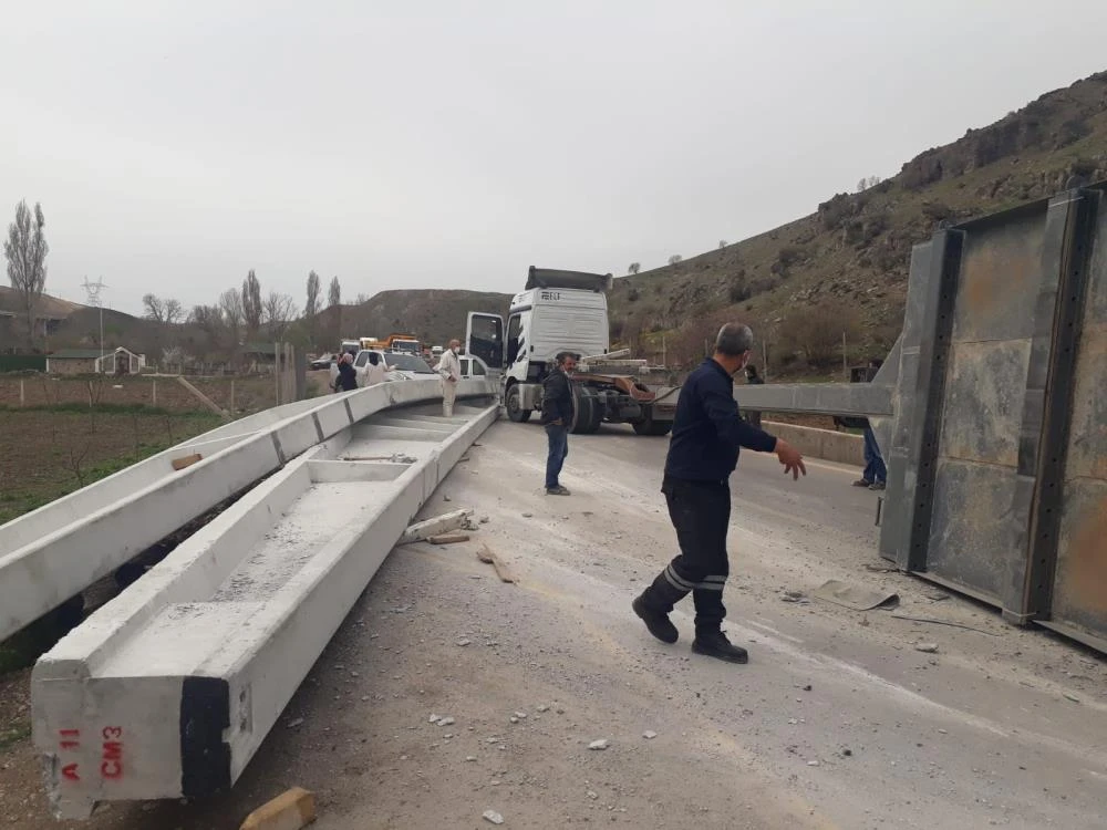Ankara'nın Sincan ilçesinde çekici üzerindeki beton kolonun kayarak yola düşmesi sonucu meydana gelen trafik kazasında 1 kişi yaralandı.