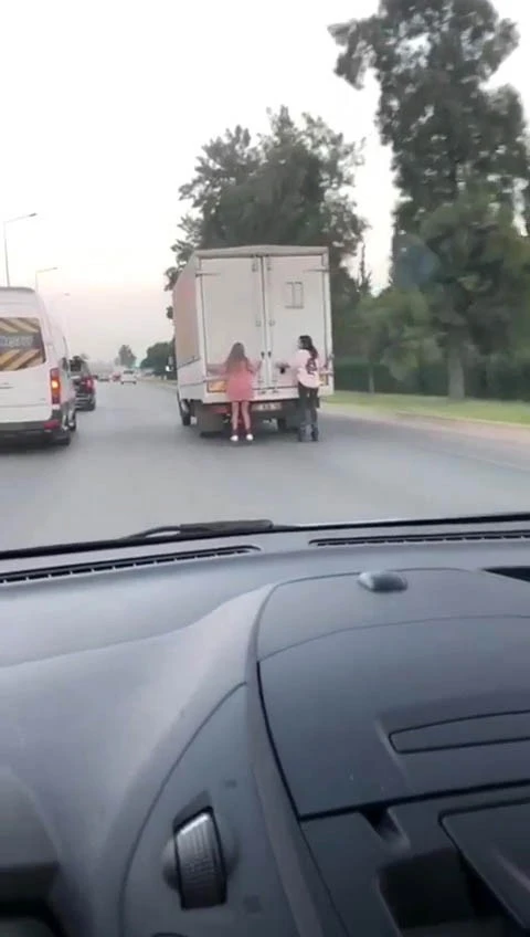 Kent trafiğinin en yoğun olduğu ve şehirlerarası ulaşımın sağlandığı Antalya bulvarında seyir halinde olan kamyonetin arkasına tutunan 2 patenci genç kız tehlike oluşturdu. Gençlerin tehlikeli yolculuğu seyir halindeki bir sürücünün cep telefonu kamerasına yansıdı. Görüntülerde, bir süre sonra duran kamyonetin arkasında kendisinin çekildiğini fark eden genç kızlar aracın arkasından ayrılıp başka araçlara yönlendi. Ardından genç kızın kendisini çeken sürücüye yönelip ilk başta 'çekme' dedikten sonra sürücüyle tutunma pazarlığı ilginç anlar oluşturdu.