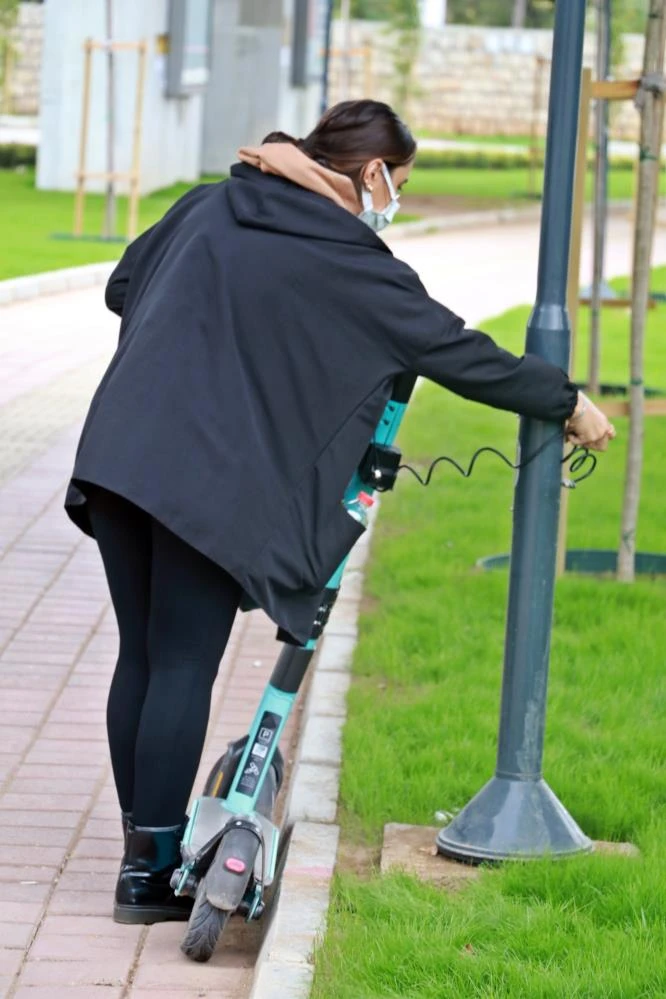 Bu sırada aracın altına sıkışmış vaziyetteki scooter, polis tarafından alınarak kaldırıma konuldu. Yaralanan genç kızın arkadaşıysa süre hesabı kiralanan scooteri daha fazla ücret yazmasın diye kaldırımdan alıp aydınlatma direğine bağladı, ardından uygulamayla kiralamayı sonlandırdı.