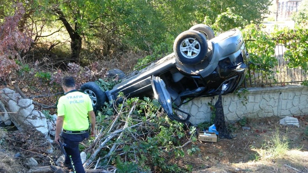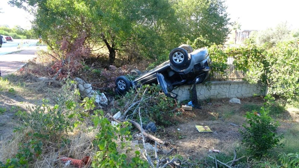 Virajı alamayan sürücünün aracı bahçeye uçtu
