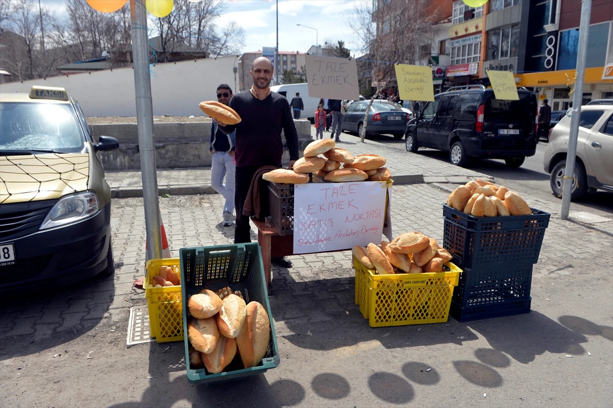 Ardahan kent merkezinde pazar günleri ekmek fırınlarının kapalı olmasına tepki gösteren Sevdamız Ardahan Derneği Başkanı Levent Pehlivan, caddede ekmek satışı yaptı.