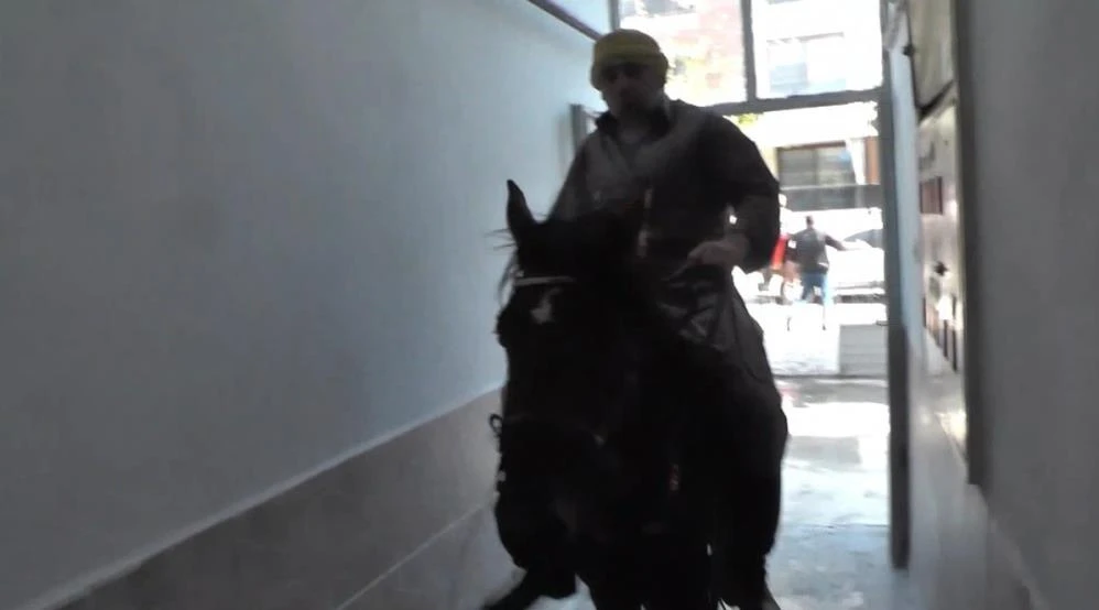 Çevredekilerin şaşkın bakışları arasında atıyla girdiği dairenin balkonuna çıkan Sıkı, burada hediyesini aldı. Balkondan izleyenleri selamlayan Sıkı, yine atıyla merdivenlerden indi ve apartmandan çıktı. Sıkı’nın atıyla daireye girdiği anlarda ilginç görüntüler ortaya çıktı.