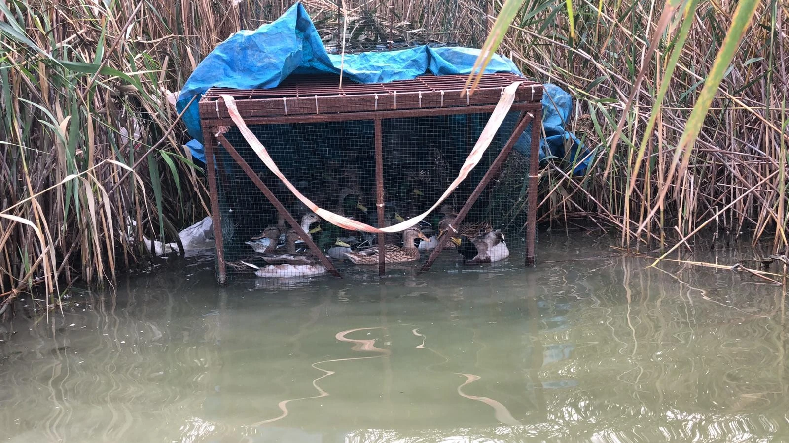Kafeslerin içini kontrol eden ekipler, kafeslerin içinde avda kullanılması ve av bölgelerinde bulundurulması yasak yeşilbaşlı ördek olduğunu tespit etti.