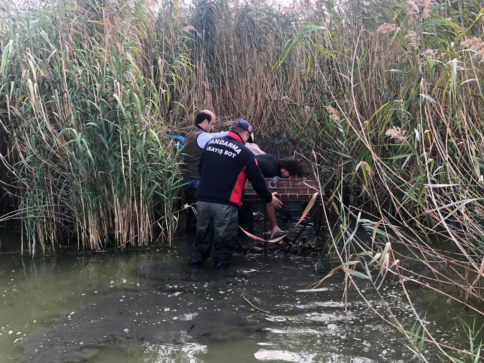 Bursa İl Jandarma Komutanlığı ekipleri, İznik Gölü kıyısında 2 tane kafes fark etti.