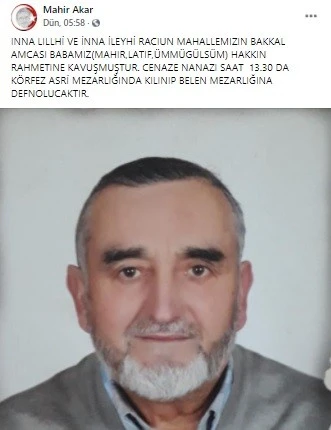 Kesin ölüm nedeni yapılacak olan otopsi sonrası belirlenecek Mahir Akar’ın cenazesi, işlemleri sonrasında Körfez ilçesinde toprağa verilecek.