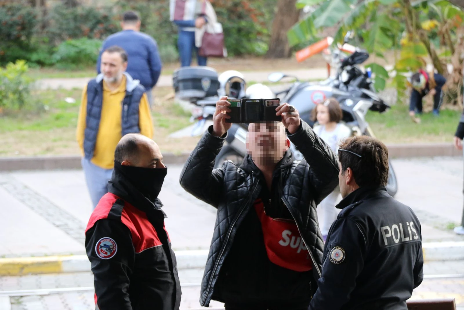 Diğer yandan, çevrede kendisini çeken kameralara el hareketi ile hakaret eden ve "Bende 6 kimlik var" diye cebinden çıkardığı cüzdanı çevresindekilere gösteren şahsın, olay sırasında telefonunu kaldırıp esnafla selfie çekinmesi de dikkat çekti.