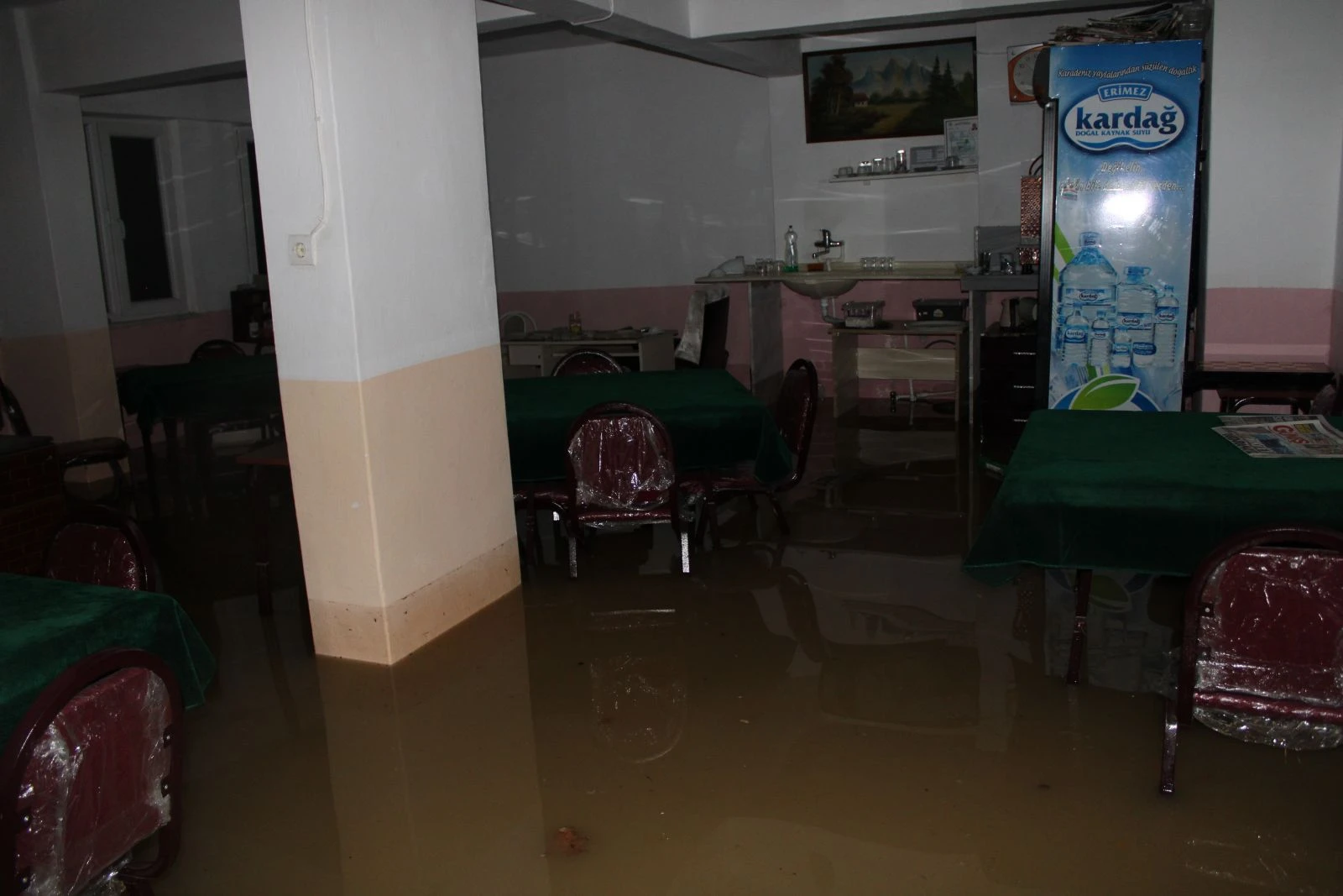 Aşırı yağış sonucu rögar kapaklarından taşan sel suları bir aynı mahallede ise bir kahvehaneyi sular altında bıraktı. Ceyhan Türedi isimli vatandaşa ait olduğu öğrenilen kahvehaneye dolan sular masa ve sandalyeleri kullanılamaz hale getirdi. Her yağışta iş yerinin sular altında kaldığını söyleyen Ceyhan Türedi," 26 yıldır bu mahalledeyim ve her yağmur yağışında iş yerim sular altında kalıyor."ifadelerini kullandı.