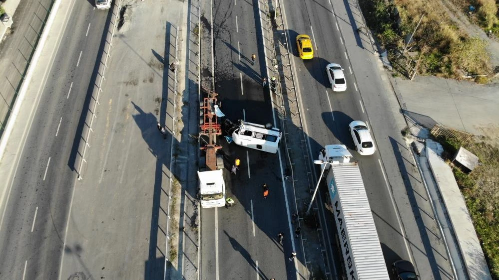 Kaza saat 07.45 sıralarında Yakuplu Ambarlı Liman Yolu'nda meydana geldi. Edinilen bilgiye göre, 34 LAG 773 plakalı işçi servisi seyir halindeyken sürücüsünün kontrolünden çıkınca park halindeki 34 TK 2864 TIR’a çarpıp devrildi.