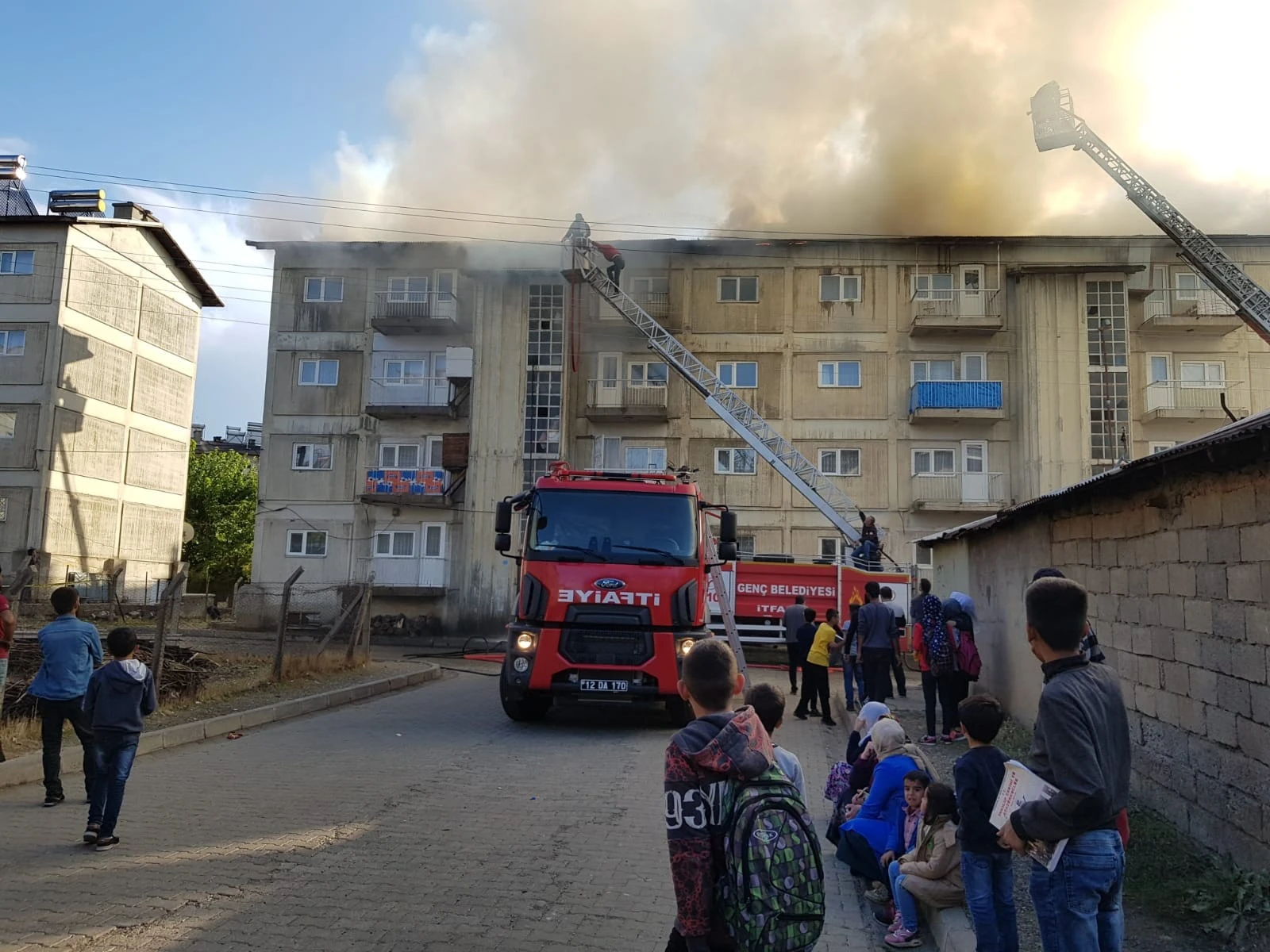 İlçeye bağlı Yenişehir Mahallesi'ndeki 4 katlı bir apartmanda, henüz belirlenmeyen bir nedenden dolayı apartmanın çatı katında yangın çıktı.