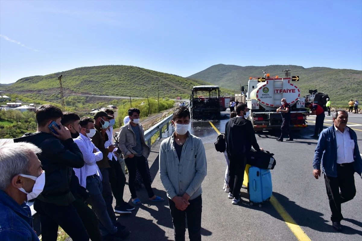 Alınan bilgiye göre, sürücüsünün kimliği henüz öğrenilemeyen 44 FM 546 plakalı yolcu otobüsü, Bingöl-Elazığ kara yolunun 30. kilometresinde seyir halindeyken henüz bilinmeyen nedenle yanmaya başladı.