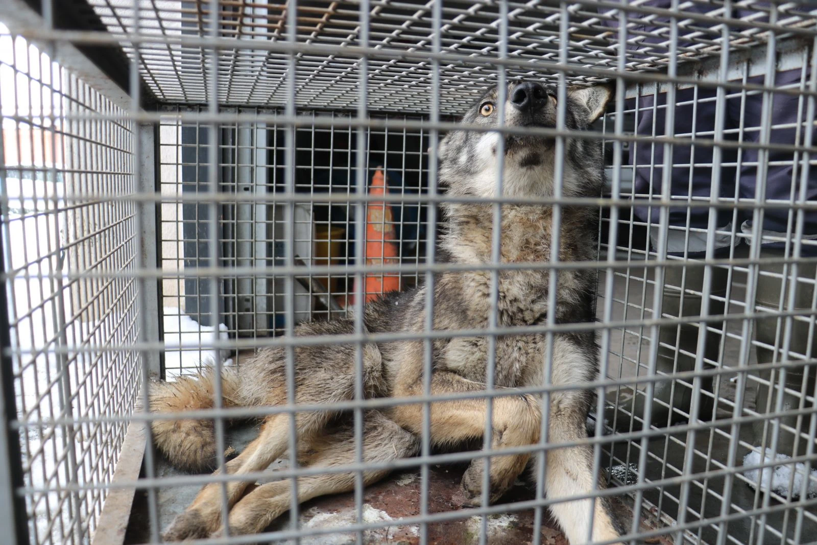 Ekipler, karların üzerinde yatar durumda buldukları kurdu, tedavi etmek üzere Sivas belediyesi Sokak Hayvanları Yaşam, Rehabilitasyon ve Bakım merkezine getirdi.