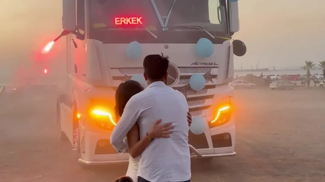 Tır şoförlüğü 25 yaşındaki yapan Caner Çevik, 10 yıldır yollarda direksiyon sallayarak ekmek parasını kazanıyor. Evli olan ve eşi 2. evladına hamile olan Çevik, evladının cinsiyetini daha önce görülmemiş bir şekilde öğrendi. Çevik ailesi ve genç tır şoförünün meslektaşları tarafından organizasyonda; bir tırın üzerine erkek ve bir tırın üzerine kız yazılarak araçlar süslendi. Aynı anda hareket eden araçlardan ‘erkek' yazan öne geçerek kornaya basmaya başladı ve genç çift, evlatlarının cinsiyetini öğrendi. Genç çiftin daha önce görülmemiş cinsiyet öğrenme partisiyse sosyal medyada ilgi odağı oldu.