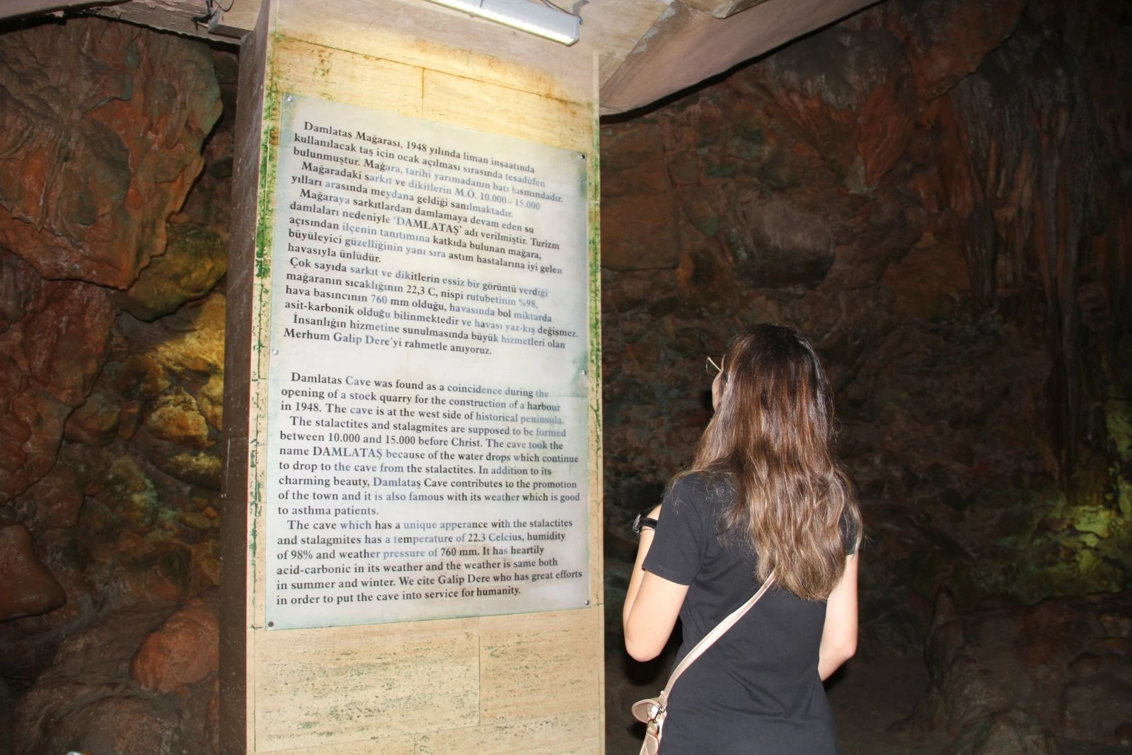 Türkiye’de turizme açılan ilk mağara olarak da bilinen Damlataş Mağarası, 1948 yılında iskele inşaatında kullanılmak üzere taş ocağı açılırken, dinamit patlatılması sonucu tesadüfen ortaya çıktı. Binlerce yılda oluşan dikit ve sarkıtlarıyla dikkati çeken mağaranın ziyaretçi sayısı her yıl artıyor. Geçen yıl 287 bin 219 kişinin ziyaret ettiği mağarayı bu yıl ilk 8 ay ise 259 bin 518 kişi ziyaret etti. Ziyaretçilerin yüzde 55’lik kısmını ise astım hastaları oluşturdu.