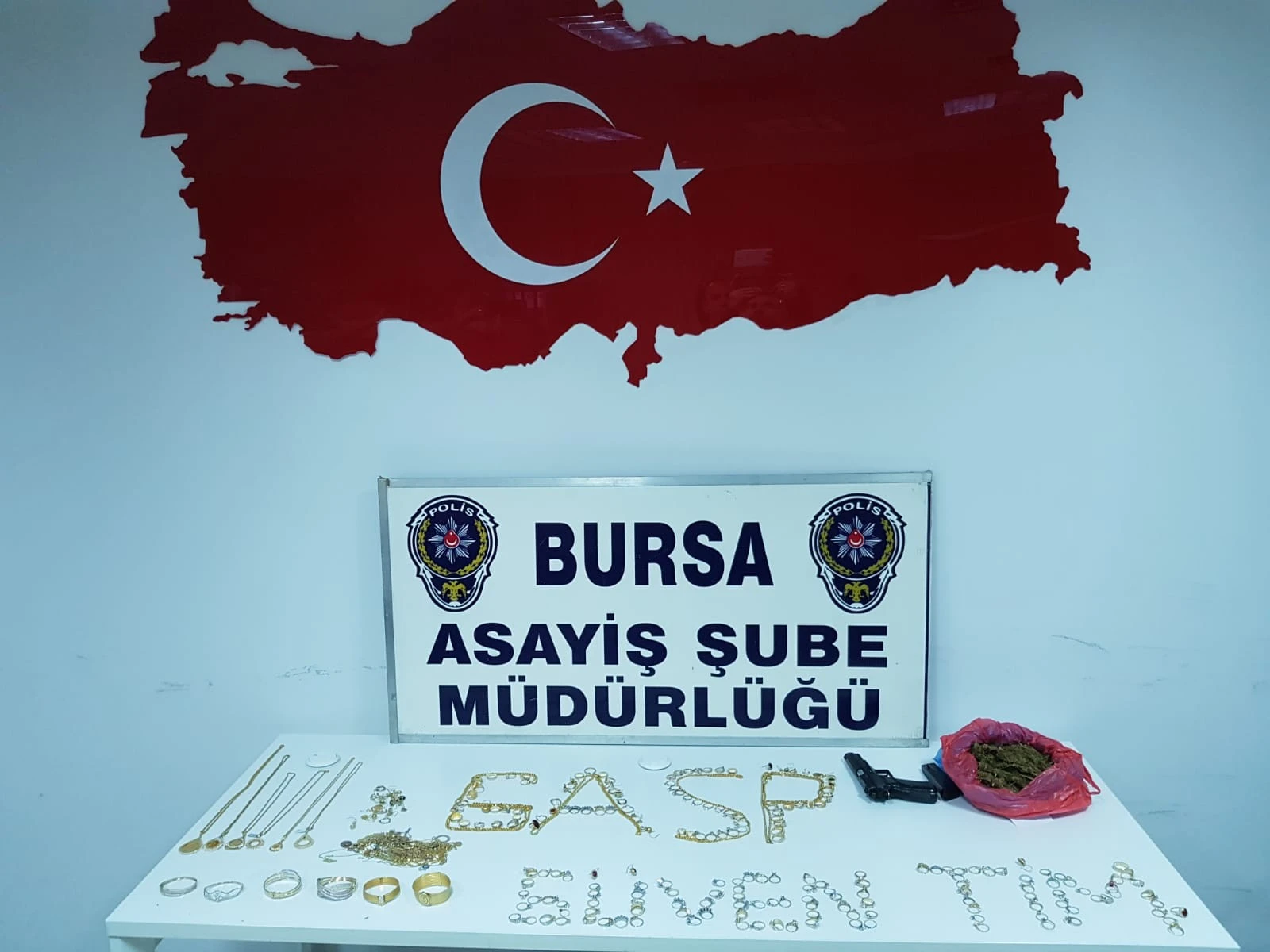 Gözaltına alınan iki şüpheli altınları Cumalıkızık minibüs duraklarının üst tarafındaki ormanlık alana sakladıklarını itiraf etti. Bunun üzerine gasp büro dedektifleri tarafından yapılan aramada silah ve altınlar belirtilen alanda bulundu. Şüpheli F.Y.’nin evinde yapılan aramada ise yarım kilo uyuşturucu ele geçirildi. İki şüphelinin emniyetteki sorgusu sürüyor.