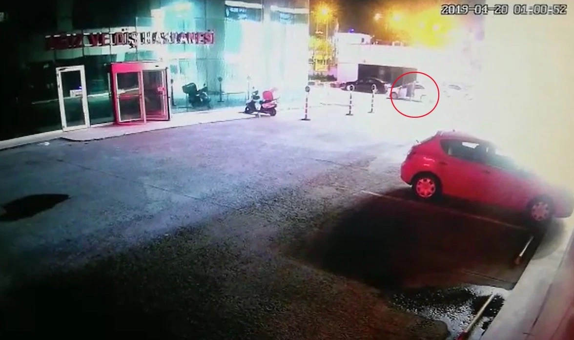 Öte yandan cani kocanın karısını hastane önüne bıraktığı anlar güvenlik kamerasına yansıdı.