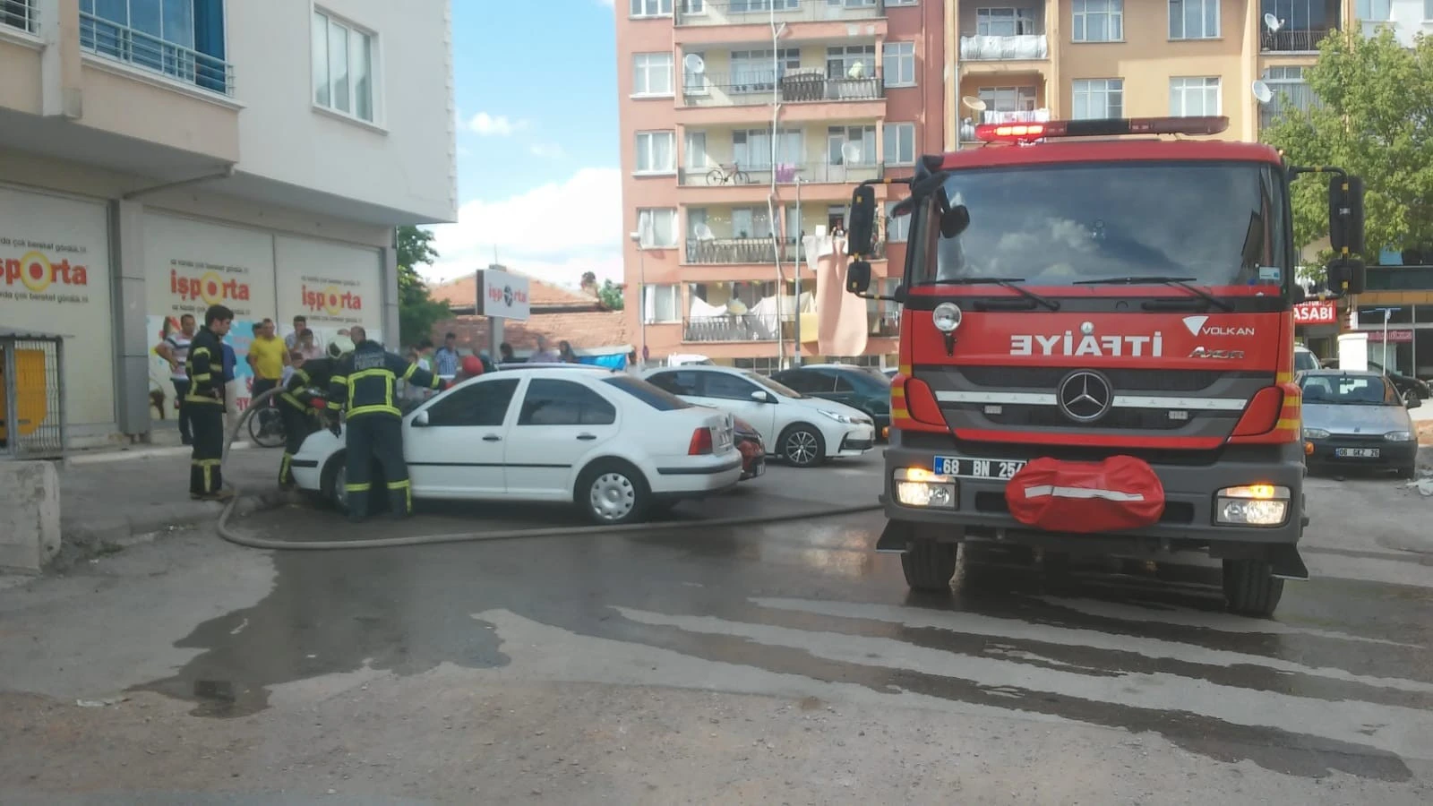 Çevredeki vatandaşlar kendi imkanları ile yangını söndürmek müdahale etti. Vatandaşların haber vermesi üzerine kısa sürede olay yerine gelen Aksaray Belediyesi İtfaiye Müdürlüğü ekipleri yangına müdahale ederek söndürdü. İtfaiye ekipleri araç içerisinde patlayan cep telefonunu bulurken, maddi hasar meydana geldi.