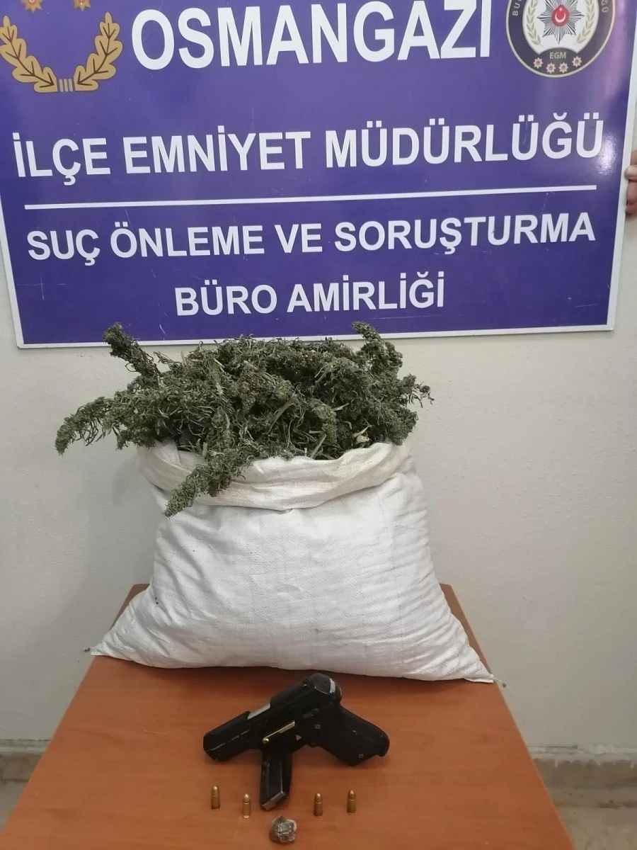 Araçta ve içindeki kişilerin üzerinde yapılan aramada ve araç içerisinde 4 kilogram 570 gram esrar maddesi, 1 buçuk gram esrar, 1 adet ruhsatsız tabanca ve 4 adet dolu fişek ele geçirildi. Şahıslara yapılan GBT sorgulamasında cezaevineden izine çıktığı belirtildi.
