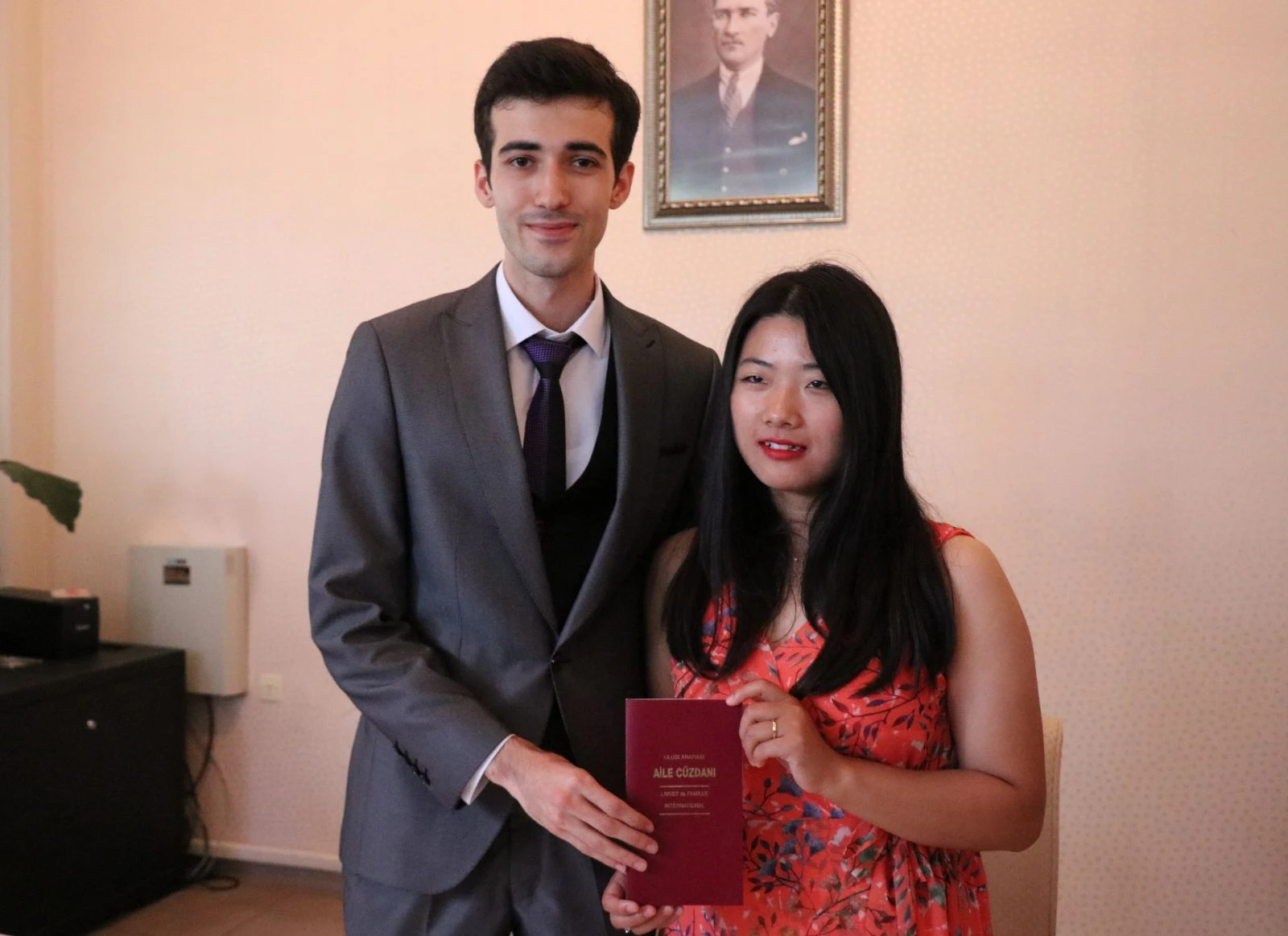 Türkiye’de evlilik işlemleri tamamlanan Wang ile Süngü’nün, Bolu Belediyesi Nikah Salonu’nda nikahlar kıyıldı. Wang’ın ailesinin katılamadığı nikah töreninde, nikah memurunun soruları tercüman aracılığıyla Türkçe’ye çevrilerek aktarıldı. Nikahın ardından evlilik cüzdanını alan Wang, Süngü’nün annesinin elini öptü.
