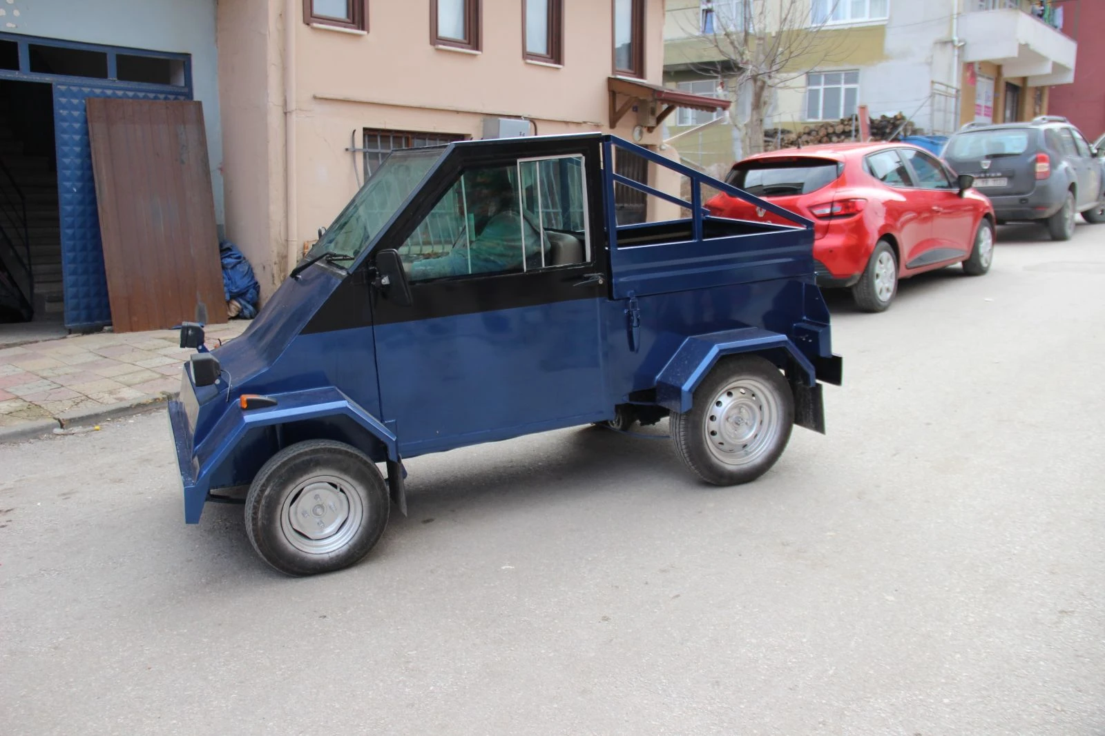 Aracı maddi bir beklenti içerisinde tasarlamadığını söyleyen Ayaz, “3 yıl emekli oldum. Emekliliğim sonrasında boşluğa düşmem sebebi ile burada bir atölye kurdum. Kafamdaki projelere göre herhangi bir çizim yapmadan kendi arabamı kendim dizayn ettim. Evimin yanında kendi imkanlarım ile tasarladım. Parçaları Ankara’dan aldım. Tasarımı, boyası gibi tüm işçiliğini sanayide yaptım. Sanayiye götürdüğüm zamanlar hiçbir araçla taşımadan gittik. Kendisi gidip geliyor. İsteğe göre araç tasarlarız biz. İsterse araç, dağda odun çeken bir makine olsun, isterse yolda giden, isterse de üç tekerli olsun. Elimde üç beygir ile 10 beygir arasında motorlar mevcut. İsteyenin arzusuna bakar bu iş” dedi.