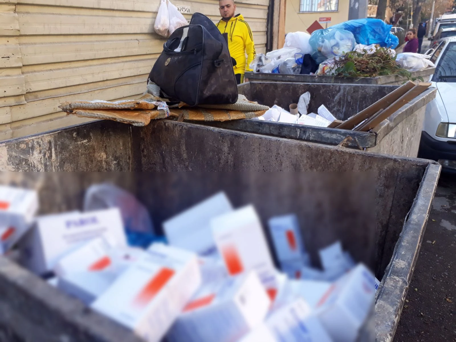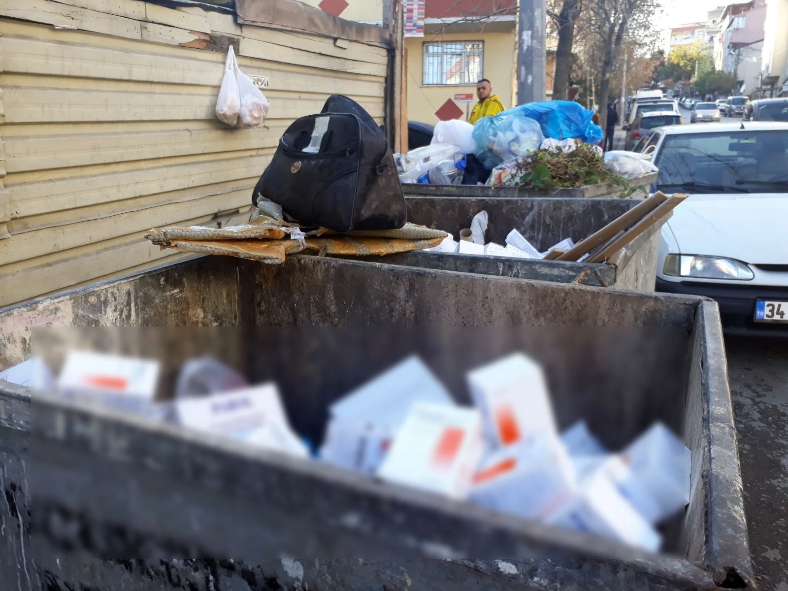 Küçükçekmece’de çöp konteynerlerinin önünde duran bir kamyonetten inen 2 kişi kolilerce ilacı çöp konteynerına atıp kaçtı.