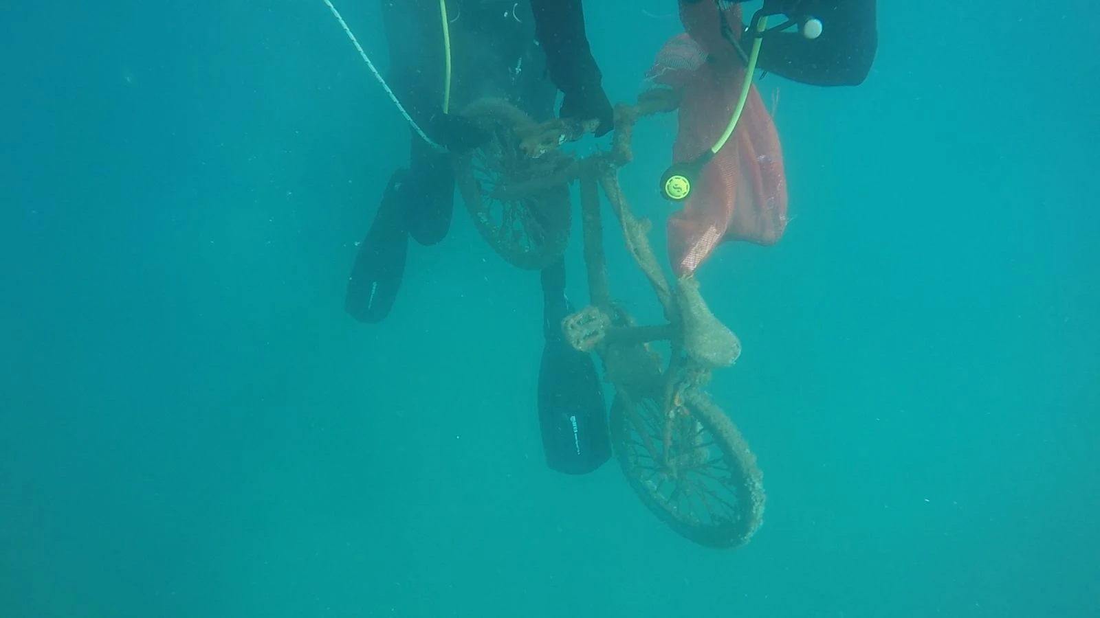 Ekipleri ve vatandaşları en çok şaşırtan ise denizden çıkarılan bisiklet oldu.