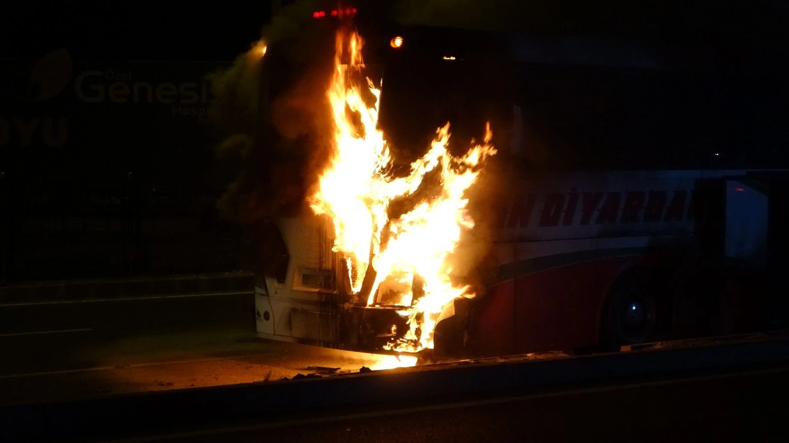 Diyarbakır-Şanlıurfa yolu Yeni Otogar önünde meydana gelen olayda Diyarbakır’dan Antalya’ya Kurban Bayramı tatili için yolcularını alan otobüs seyir halinde iken aniden yandı. Yangının kısa sürede büyümesi ile otobüs alev topuna döndü. Yolcuların erken tahliye edilmesi ile büyük bir facianın önüne geçilirken, çevredekilerin yangın tüpüyle müdahalesi yeterli gelmedi. Çevredekilerin müdahalesi sırasında yanan araçta bir patlama meydana geldi. Olay yerine gelen itfaiye ekipleri yanan aracı söndürürken trafiğe kapanan yol tekrardan açıldı.