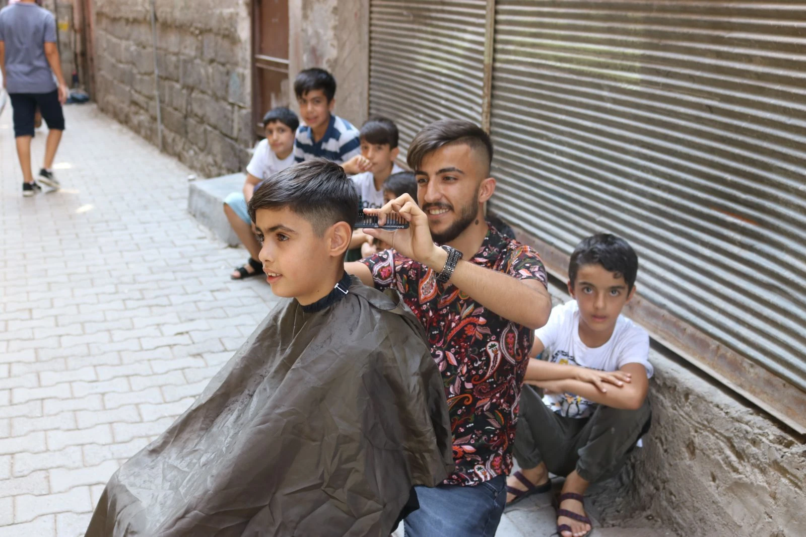 Resul Yılmaz, bu sefer de izinli gününde Diyarbakır sokaklarını, özellikle Sur ilçesinde mağdur ve yetim çocukları tıraş ederek onların yüzünü güldürüp bayrama hazırlamaya başladı.