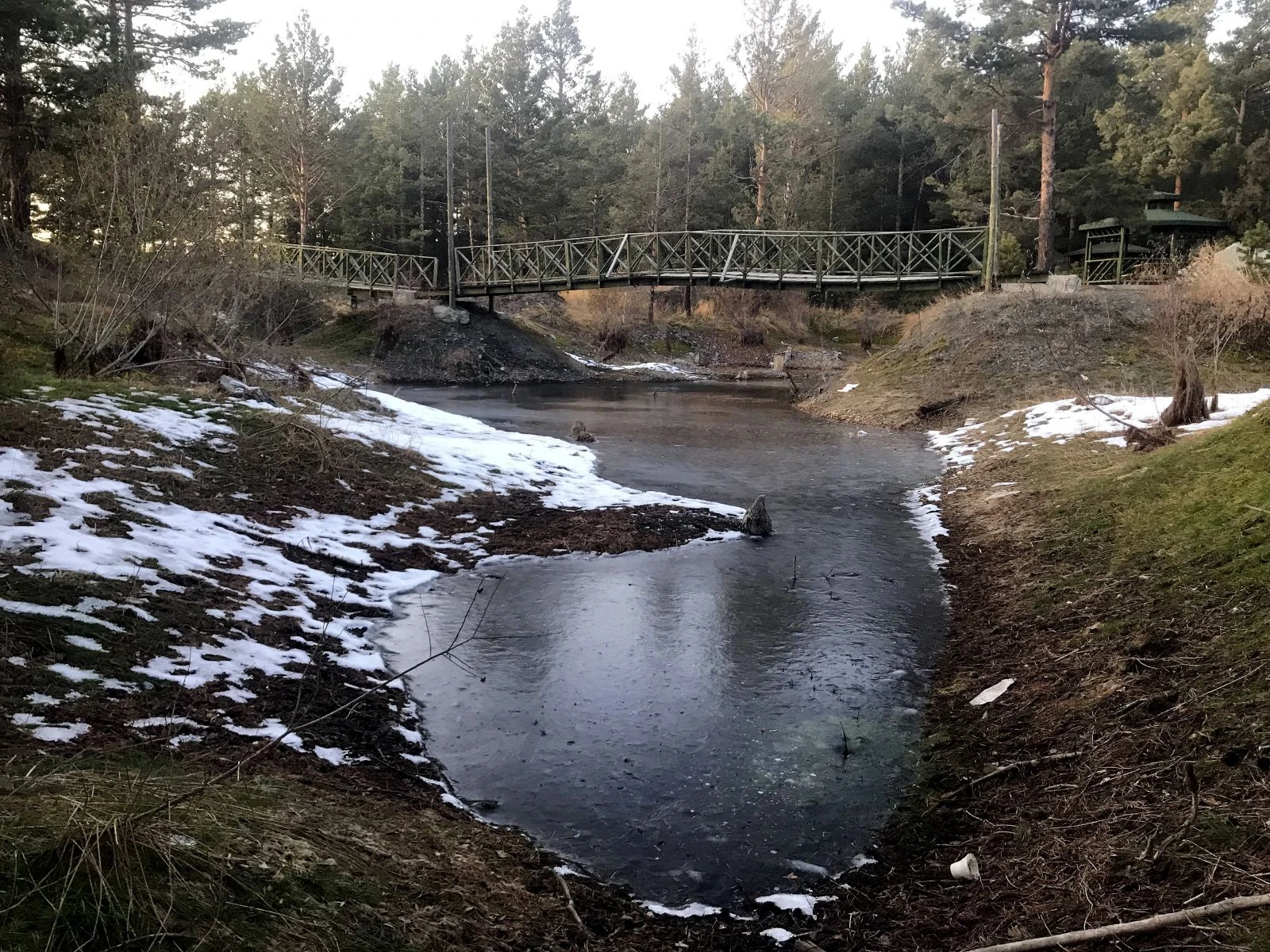 Özellikle yaz aylarında doğal güzelliğiyle vatandaşların piknik yapmak için tercih ettiği, 1800 rakımdaki göletin buz tutan yüzeyi, güzel görüntüler oluşturdu.