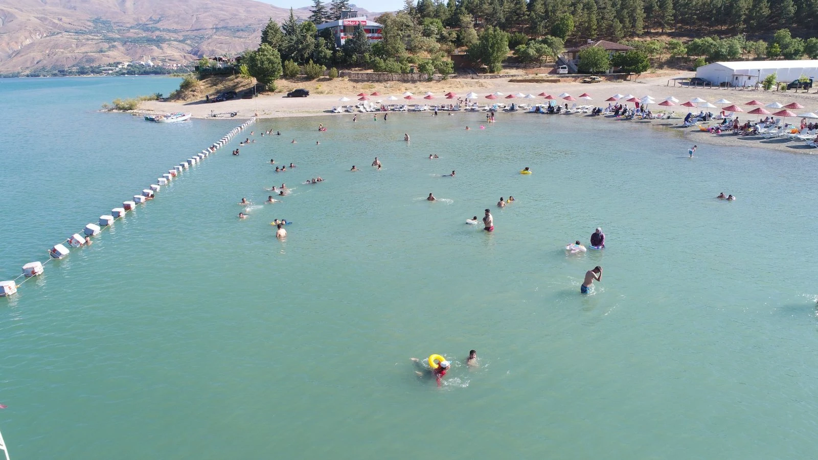 Türkiye'de derinliği ile ilk sırada yer alan, 22 kilometre uzunluğa ve 6 kilometre genişliğe sahip Hazar Gölü'nün kıyıları sıcaktan bunalan vatandaşların akınına uğradı.