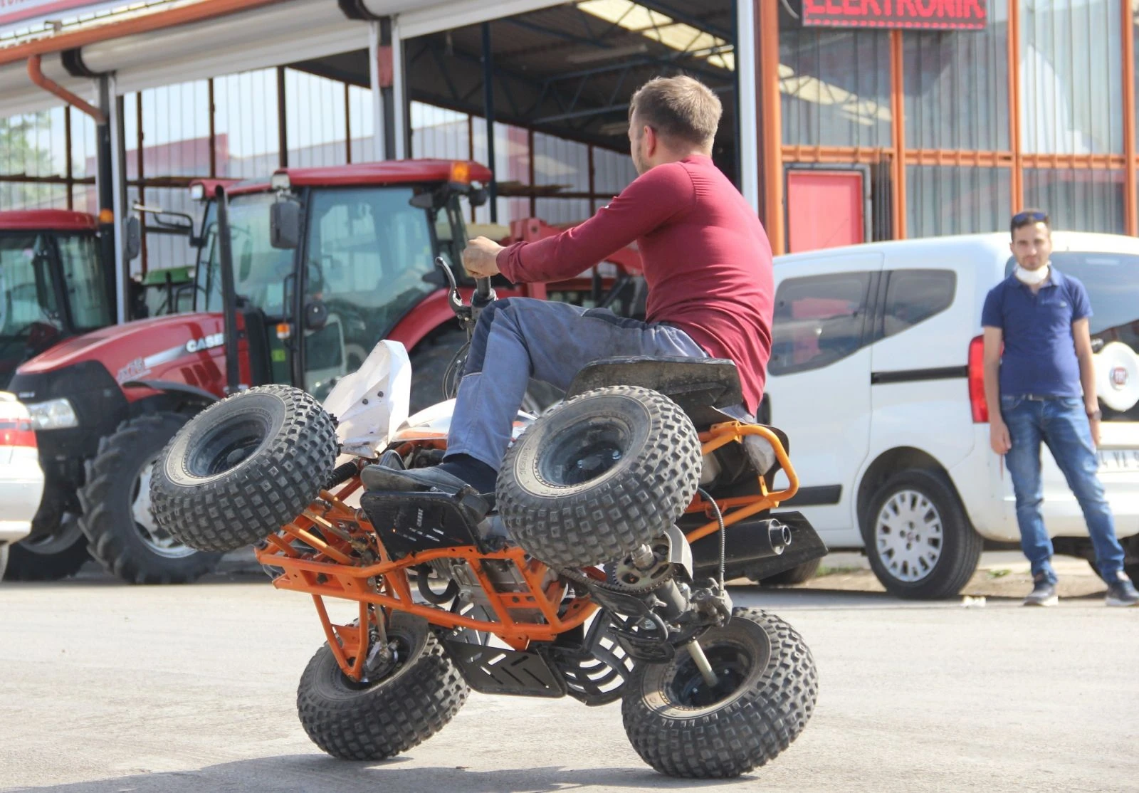 Çocukluğundan günümüze kadar motor merakı bulunan oto elektrik elektronik ustası Adem Uçar, ATV motoru ile yaptığı akrobatik hareketle dikkat çekiyor. Uçar, trafiğe kapalı alanlarda 4 tekerlekli ATV motoru ile çift teker üstünde yolculuk yapabiliyor. Oldukça denge isteyen hareketi trafiğe kapalı alanlarda yapan Uçar’ı görenler gözlerine inanamıyor.