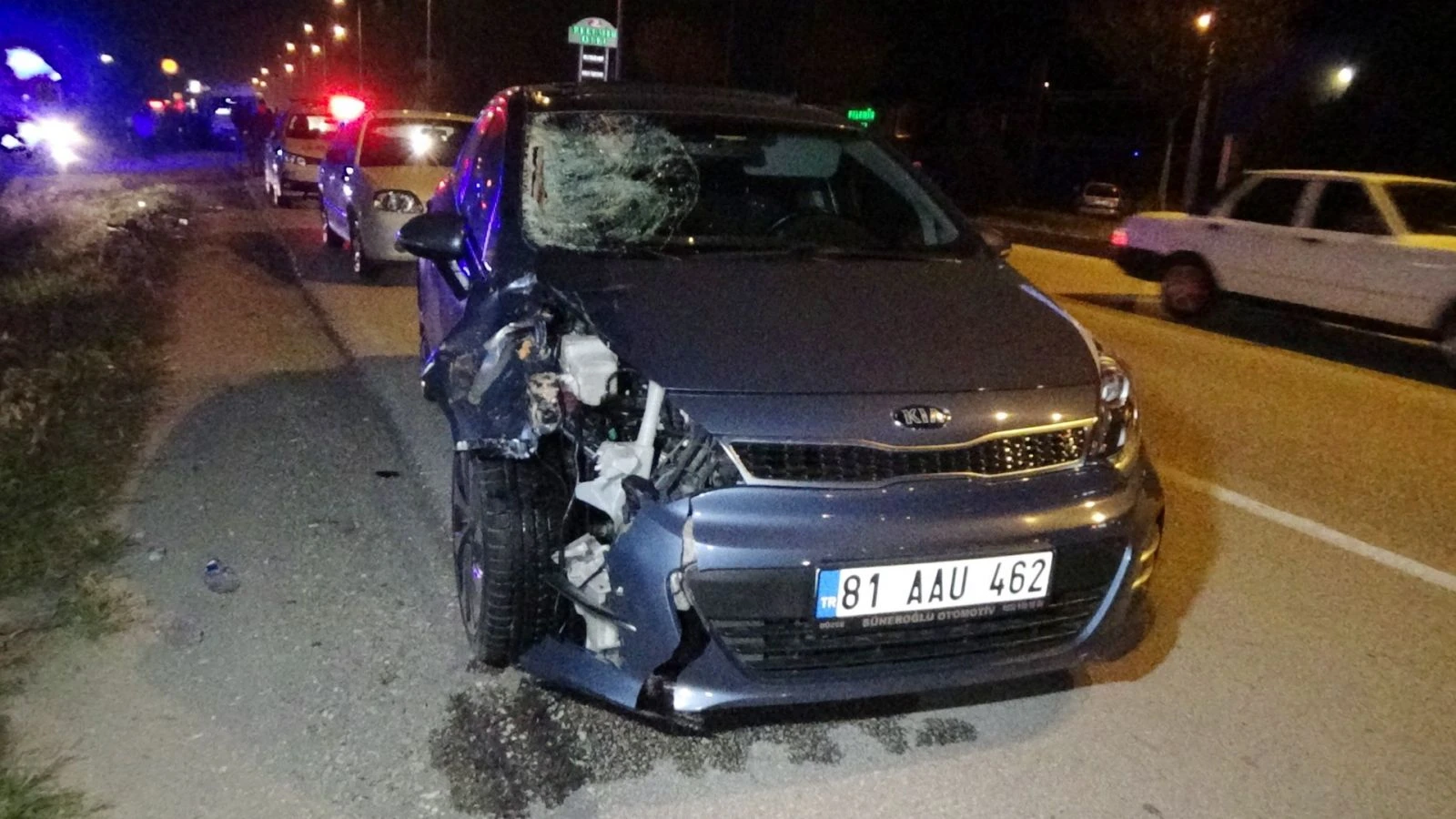 Saat 22.30 sıralarında D-100 karayolu Çerkeztaşköprü sapağında, İstanbul istikametine gitmekte olan Samet Y.’nin kullandığı 81 AAU 462 plakalı otomobil, Çerkeztaşköprü Sapağı mevkiinde yolun karşısında bulunan düğün salonuna gitmek için karşıdan karşıya geçmeye çalışan anne Fatma Kartal ile kızı Özge Kartal’a çarptı.