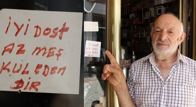 Akyüzlü, yaptığı açıklamada "1950’li yıllarda Samsun’da berber dükkanım vardı. Dükkana gelip sadece muhabbet için oturanlar olurdu. Dışarıdan onları gören müşteriler sıra var diye içeri girmezdi. O zamanlar bu yazıyı dükkanın camına yazıp astım. Onlarda yazıyı görünce gülüp giderlerdi. ’Biz meşgul etmeyelim’ diye düşünürlerdi. Bu yazı aslında ters bir cevap değil. İnsanları rencide anlamında değil bu. Anlayan anlıyor. Buraya geldikten sonra yazıyı buradaki dükkanıma astım. Bu yazıyı yazdıktan sonra cirom 2 bin TL arttı. Bu yazı çok önemli. İyi dost az meşgul edendir. Bu yazıdan sonra ticari hayatım gelişti. Boş sohbetler ortadan kalktı. Ticaret hayatında bu konu aslında çok önemlidir. Meşguliyet iyi bir şey değil! Bu yazı, görenlerin çok ilgisini çekiyor. Tebrik ediyorlar" dedi.