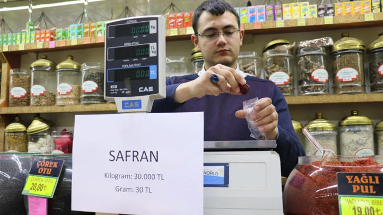 Dünyanın en kaliteli safranı Türkiye’de üretilirken yerli saf safranın kilosu 30 bin TL’den, yerli pilavlık safranın kilosu 150 TL’den. İthal safranın kilosu ise 70 bin TL’den alıcı buluyor. Fiyatı altında yarışan bu değerli ürün altın gibi gram ile satılıyor.
