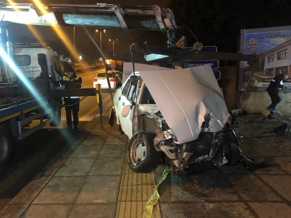 Duvara çarpan otomobil hurdaya döndü