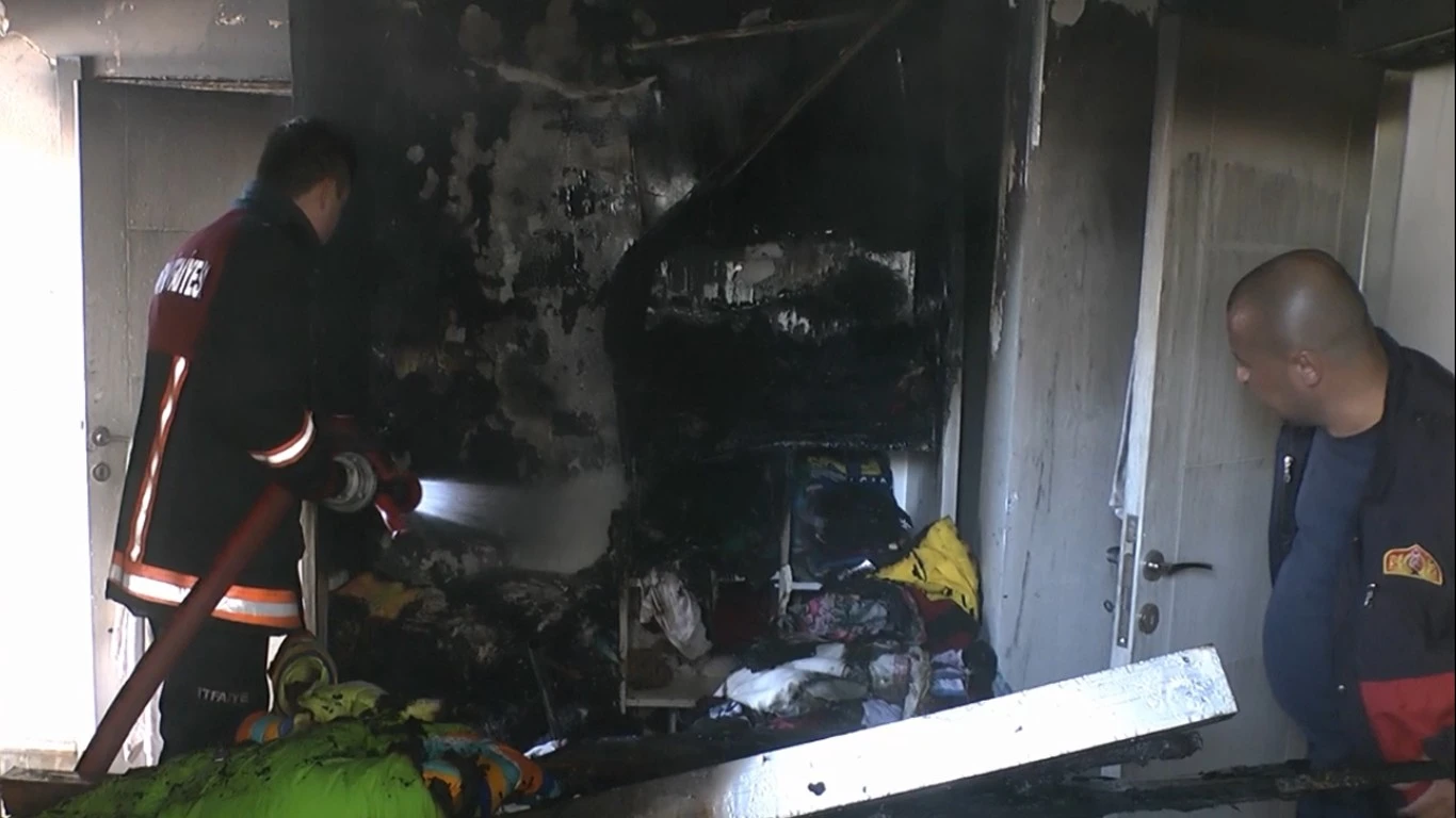 Türbe Caddesi'nde bir sitenin birinci katında Önder Göküş'e ait evin yatak odasında bulunan elektrikli ısıtıcı devrildi.