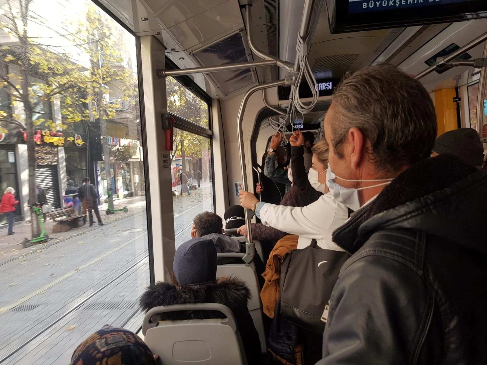 Türkiye genelinde Covid-19’e karşı hafta sonları uygulanan sokağa çıkma yasağının kalkmasından sonra Eskişehir'deki tramvayda oluşan kalabalık endişe uyandırıyor.