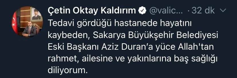 Öte yandan, eski başkan Duran’ın ölümü ailesi ve sevenleri başta olmak üzere bütün Sakarya’yı yasa boğdu.