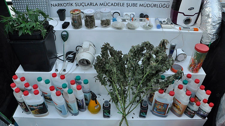 Ayrıca saksılarda da topraksız tarım yöntemiyle yetiştirilmiş boyları 10-20 santimetreye ulaşan 7 kök Hint keneviri ele geçirildi.