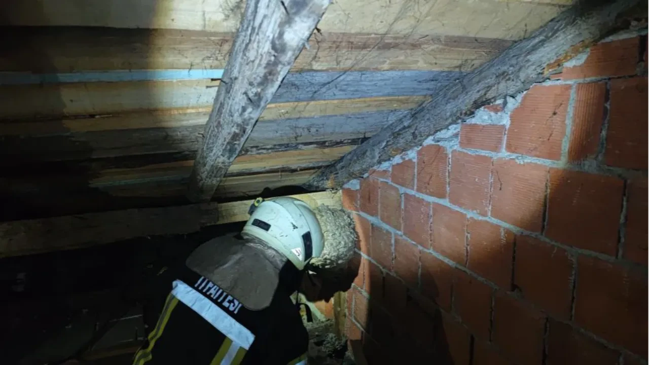 Çeşme Mahallesi Dış Kale Altı Sokak'ta Abdullah Yıldız, evinin çatı katında büyük bir yaban arısı yuvası fark edince durumu Safranbolu Belediyesi İtfaiye Müdürlüğü ekiplerine bildirdi.