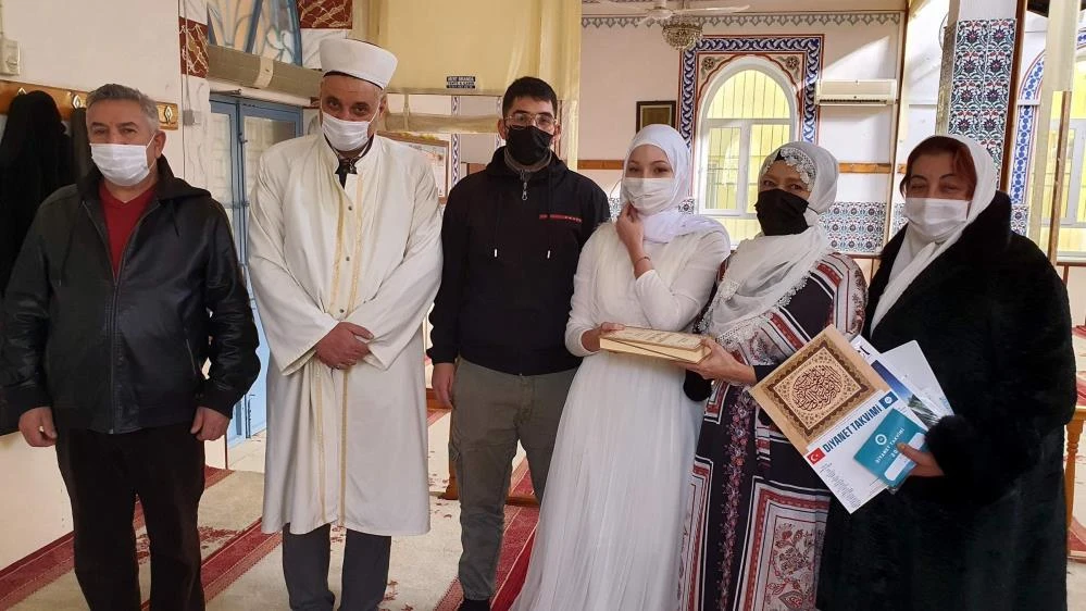 İlçe merkezindeki Yeni Sinan Camiinde Diyanet İşleri Başkanlığının yetkisi ile İmam Hatip Bilal Ekinci tarafından düzenlenen ihtida merasimi ile Müslüman olan ve Türk ismi alan anne Sandrine ve kızı Rebecca’ya Kur’an-ı Kerim ile İslam dini ile ilgili temel bilgilerin bulunduğu çeşitli kitaplar hediye edildi.