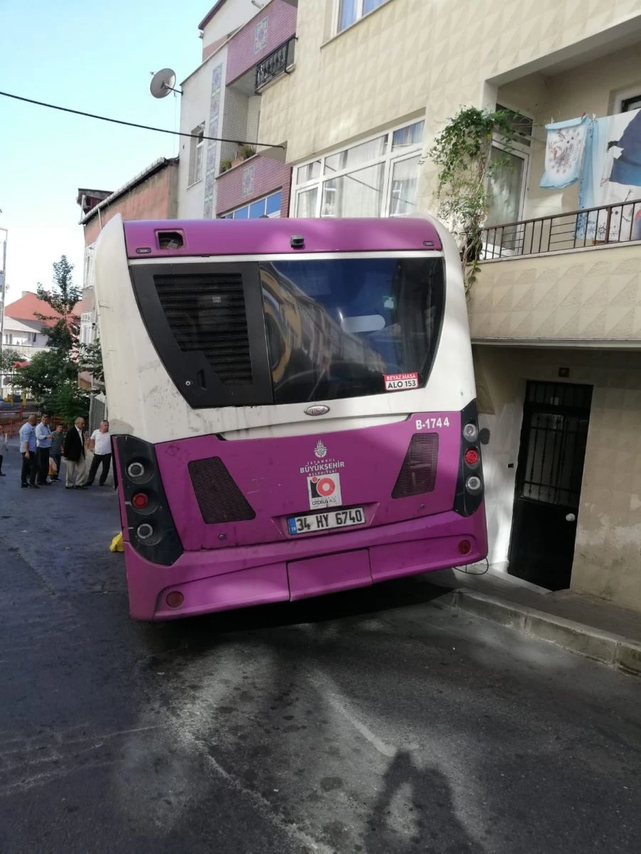 Kağıthane'de freni boşalan halk otobüsü, bir iş yerine çarparak durabildi.