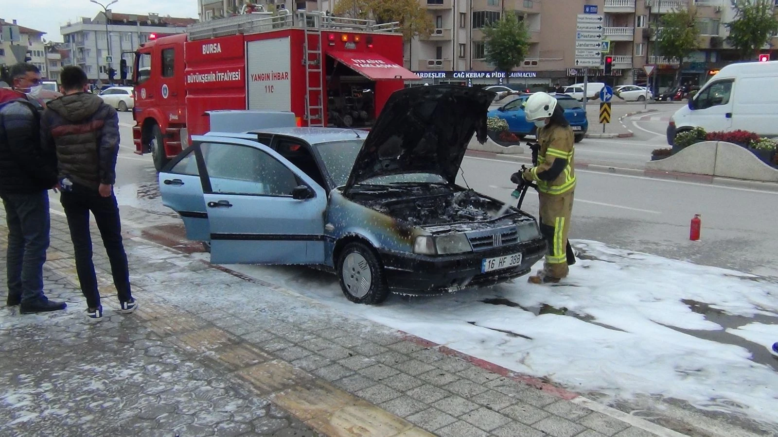 İnegöl AVM önünde S.Ü idaresindeki 16 HF 388 plakalı otomobil seyir halindeyken aniden araçtan dumanlar yükselmeye başladı. Durumu fark eden sürücü hemen aracını yol kenarına park edip otomobilden aşağı indi. Kısa sürede otomobil alevlere teslim oldu.
