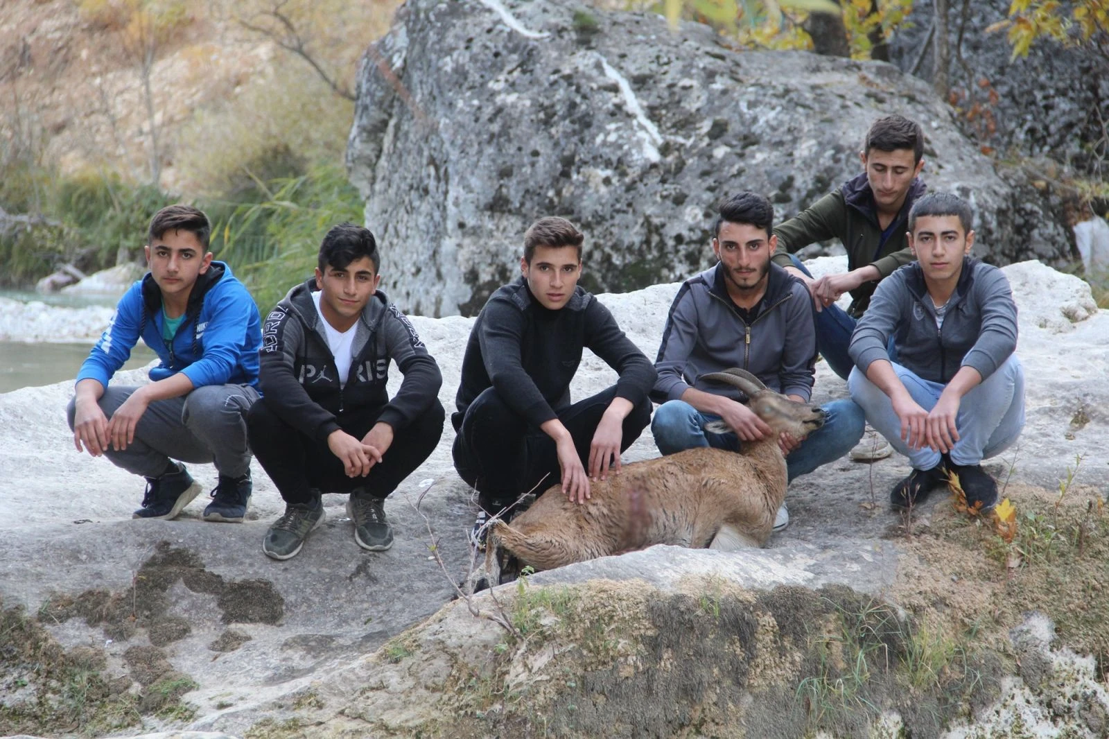 Tağar Çayın balığa gittiklerini aktaran gençlerden Ömer Faruk Kucum, "Suyun karşısında bir dağ keçisini gördük, halsiz ve bitkindi. Doğa Koruma ekiplerini aradık. Onlara yardım ederek beraber getirdik" diye konuştu.
